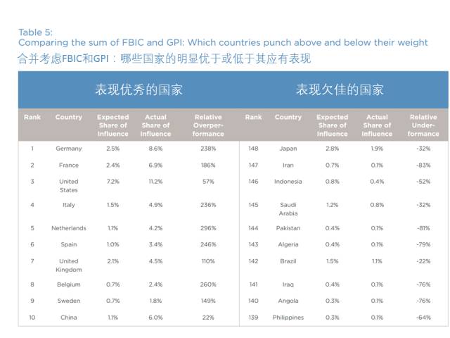 1.全球影响力集中在少数国家手中。十个影响最大的国家,拥有世界上一半的影响力。