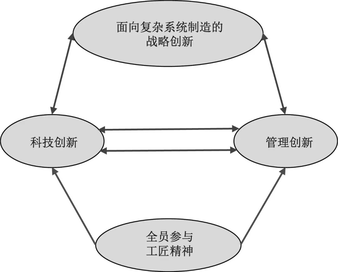 “全面”是指全面创新(totalinnovation management,TIM),即“与生产过程相关的各种生产要素的重新组合”,包括全要素调动、全员参与和全时空贯彻三个方面。全面创新最早由中国创新管理领域的创始学者许庆瑞院士于2002年正式提出。他在著作《全面创新管理:理论与实践》一书中指出,“全面创新管理应该以培养核心能力、提高持续竞争力为导向,以价值创造增加为目标,以各种创新要素的有机组合与协同创新为手段,通过有效的创新管理机制、方法和工具,力求做到人人创新、事事创新、时时创新、处处创新”。全面创新具有三个重要特征——全要素创新、全员创新和全时空创新。其中:全要素创新是指创新需要系统观和全面观,需要调动技术和非技术的各种要素,进一步激发和保障所有员工的创新活力;全员创新是指创新不再只是企业研发人员和技术人员的专属权利,而应是全体人员的共同行为;全时空创新是指企业在信息网络技术平台上实现创新时空观的全面扩展,做到24/7创新(即每周7天、每天24小时都在创新)[42]。