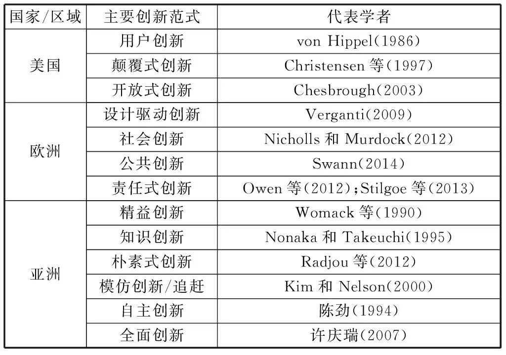 表1 各国主要创新范式小结
