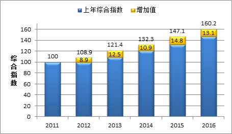 图4 2011—2016年全国科技创新中心一级指数变化情况