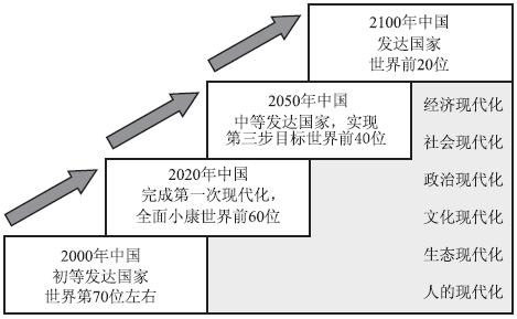 图7 中国发展的“三步走战略”和中国复兴的“三个台阶”(示意图)