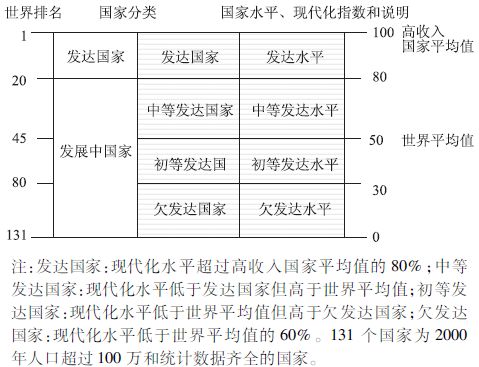 图2 2005年131个国家基于现代化水平和世界排名的国家分类