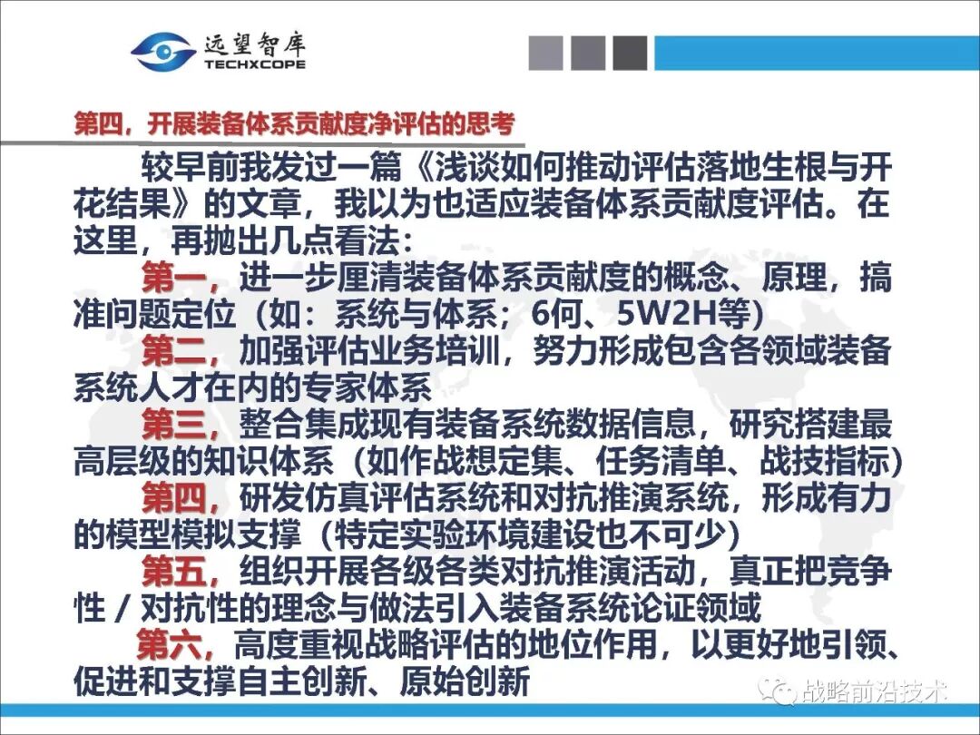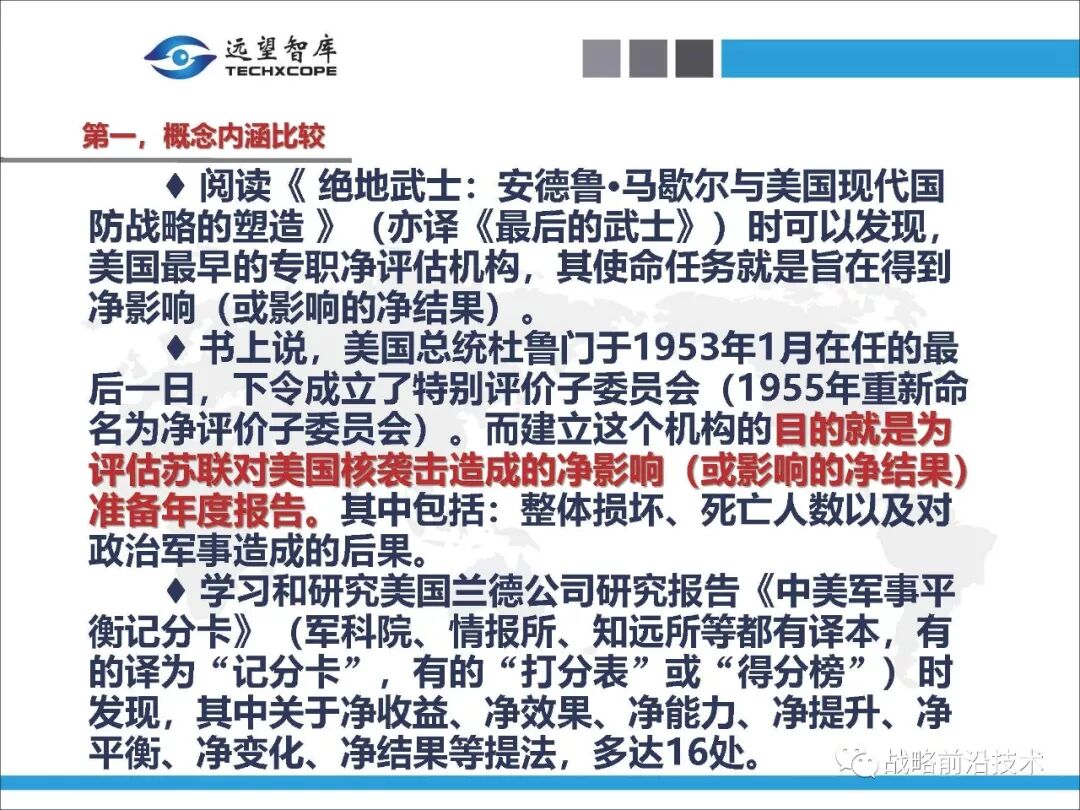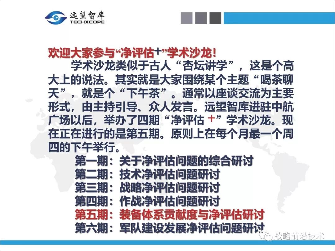 4月25日下午,远望智库以“净评估视角下的武器装备体系贡献度问题——装备体系贡献度评估与净评估之比较研究”为主题,在北京中航广场举办了第五期净评估学术沙龙。来自相关领域的领导和专家围绕以下四个问题进行了研讨:一是装备体系贡赋度评估的概念及内涵;二是有关装备体系贡献度评估方法的研究成果;三是装备体系贡献度评估与净评估之比较研究;四是以净评估解决装备体系贡献度问题的思考。现将学术沙龙开始时的情况介绍PPT部分略加删改予以发布,仅供参考。不当之处,请批评指正。