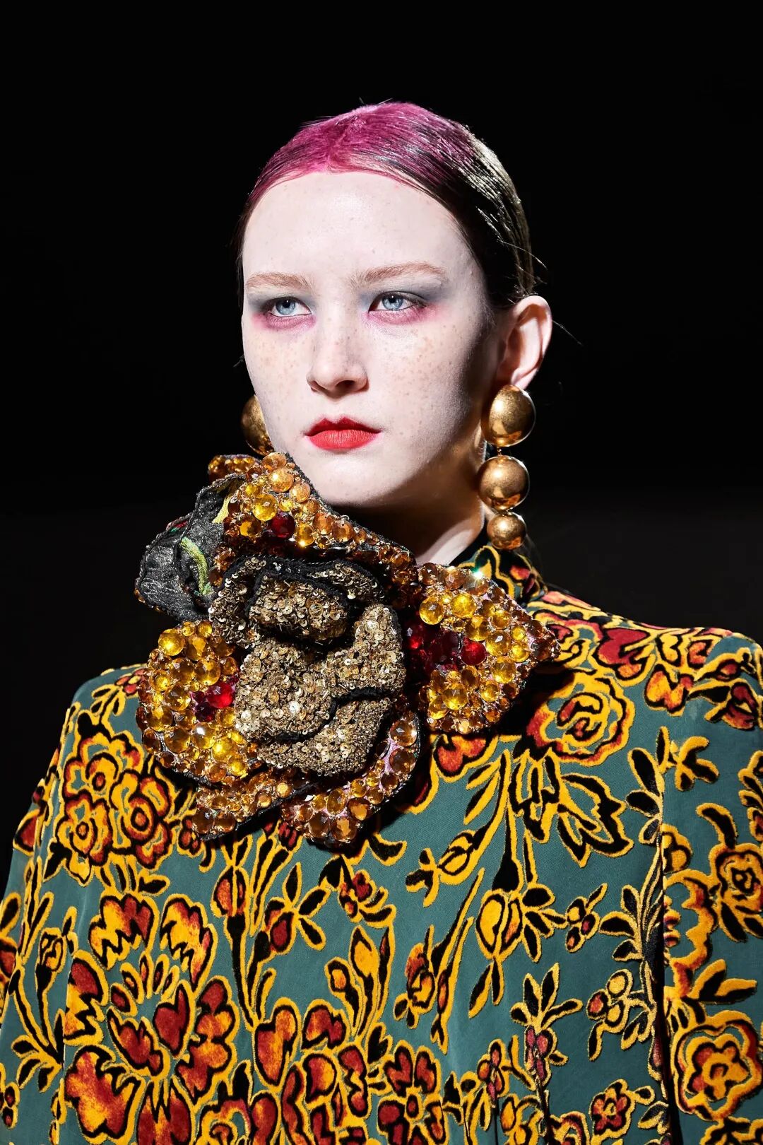 Dries Van Noten 2019秋冬系列,月季、格桑花、火焰兰、波斯菊、大丽花——平日生活中最常见的植物成为了这一季的主角,这些花卉皆来自Dries Van Noten的私人花园。
