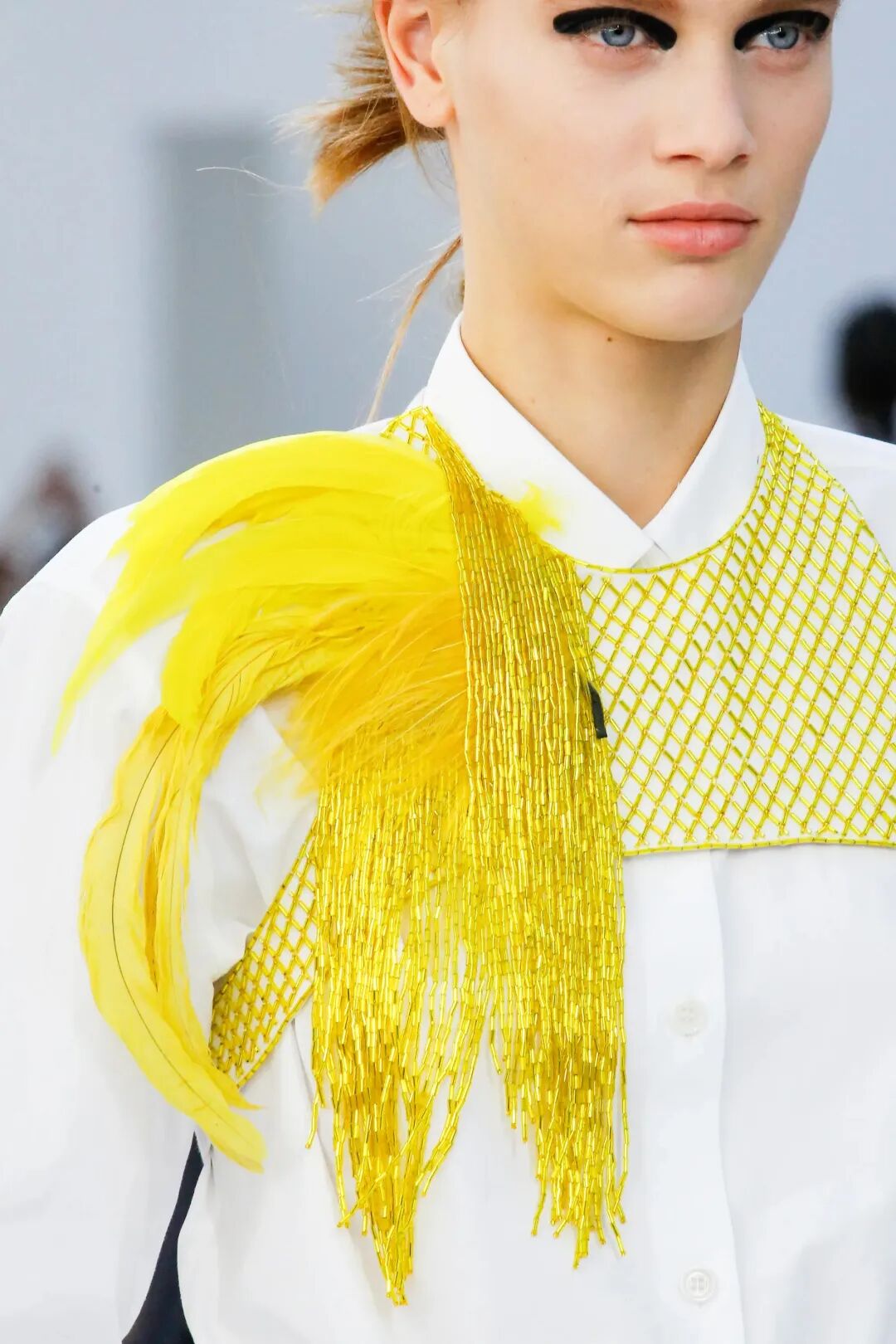 DVN:这种感觉我相信没有变过。新的一季总是如此。如果只是针对这次来说,并不是有这么多不同的元素,而是让每一种元素服务于整个系列中,这是我现在致力于的平衡。我们生活在这个碎片化的时代,必须通过一个完整的系列来强调时装的完整性。漂亮的衣服必须与整体相互依存的时候才能发挥出它的意义。每一季我都在试图寻找讲述时尚的方式。但我希望我的“诡计”不会一下被人全部看清楚,我相信当你被人看到“诡计”时,你就失去了魔法。时尚应该是更刺激的东西。