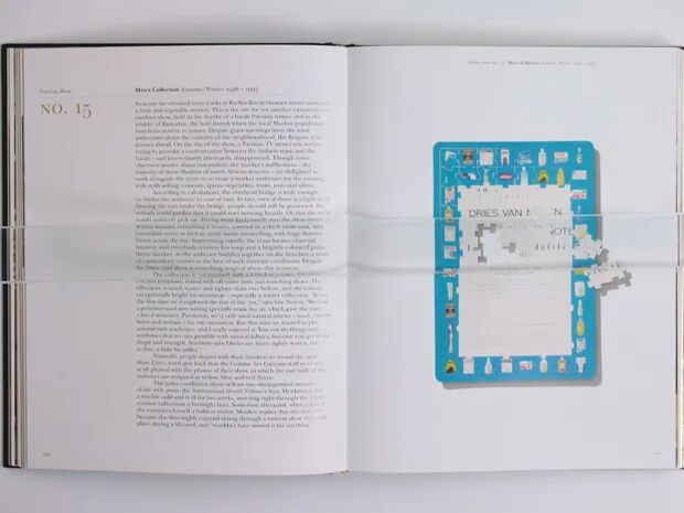画册《Dries Van Noten: 1-50》中收录了品牌往季发布会中别出心裁的邀请函设计——有着太阳神图案的小书、列印着阿拉伯语的车票、开本宛如护照的记事本,其间跃动着Van Noten对于神秘主义与未知国度的无限向往,宛如一个悉听《一千零一夜》故事的幼儿。