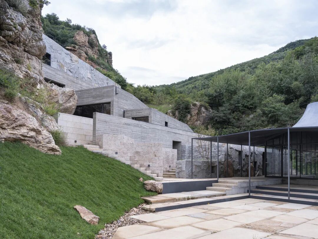 那时的他还不知道,这个项目持续了足有六年之久,而设计及建造的过程也颇为曲折:每年从4月开始施工,11月即大雪封山,建设周期本身已经很短;遇到疫情及北方罕见的大雨,需要不断调整防护措施;加之对项目施工完成度的要求极高,例如部分挡土墙是请日本的景观大师枡野俊明预制石墙板后到现场拼接完成......可幸事缓则圆,也正是这漫长的过程给予设计团队足够的时间去思考推敲,反复来到现场身临其境地体察建筑与环境的契合关系,对设计的认知愈加深刻,最终打磨其成为如今阿那亚·金山岭的地标性建筑之一。