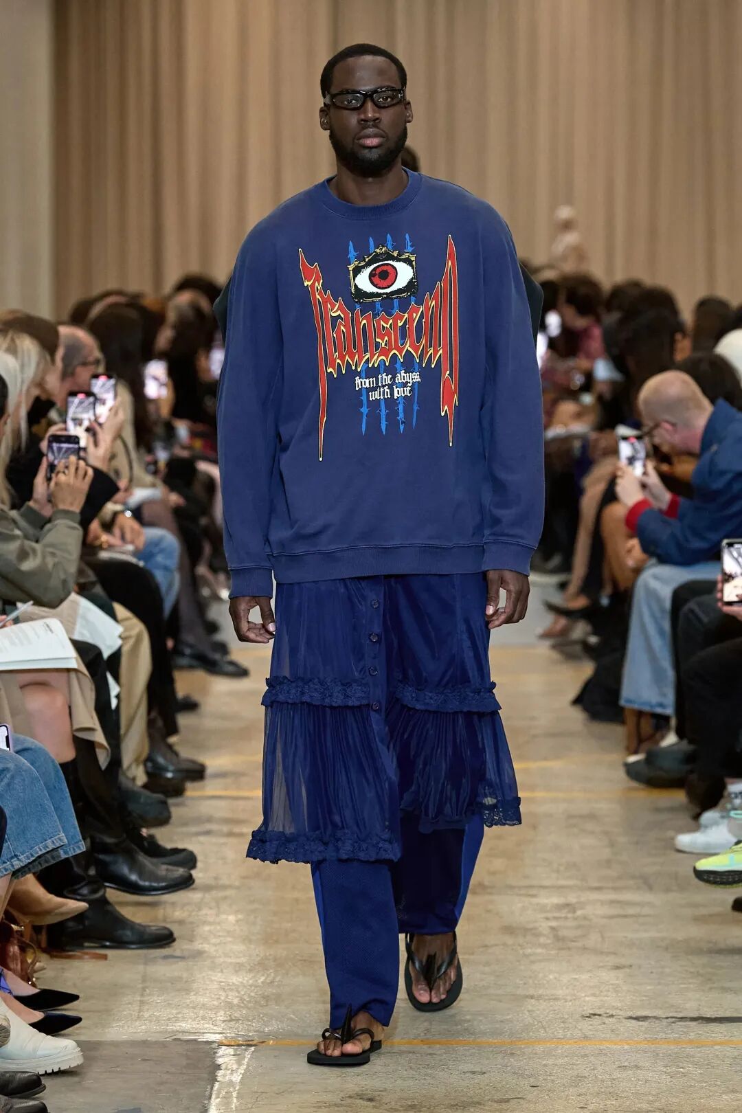 丹宁与宽大的卫衣为本次发布会注入另一个维度的叙事。