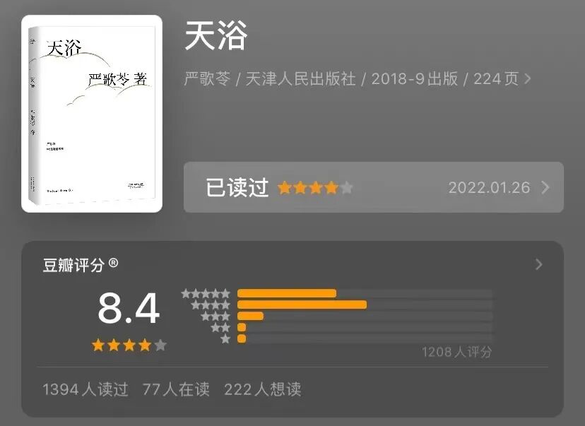 电影《天浴》你们知道的吧?不知道的可以去豆瓣搜一搜,看看简介和影评。一个糟糕的时代,一个扭曲的故事,哪怕是「令人窒息」和「令人发指」这些词语,用来形容它都显得单薄。这本书是严歌苓的短篇小说集,《扮演者》《审丑》《老囚》《爱犬颗韧》也很戳人,严歌苓真是太会写了。