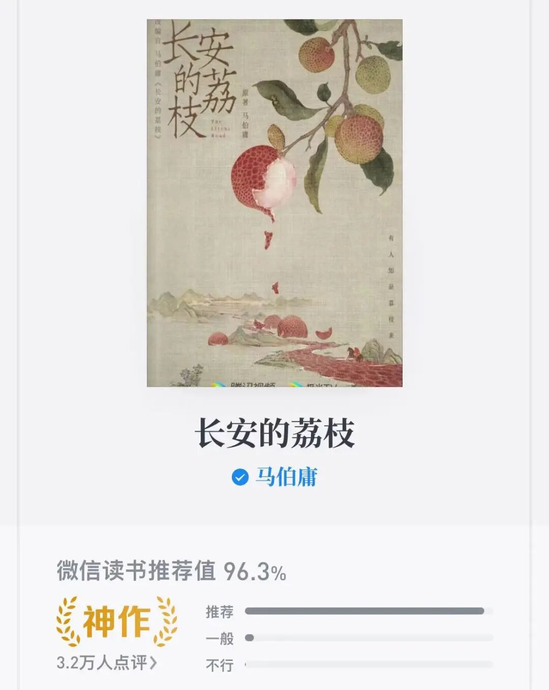 马伯庸就“一骑红尘妃子笑,无人知是荔枝来”这句话进行延伸和想象,十一天完成了《长安的荔枝》这部小说。