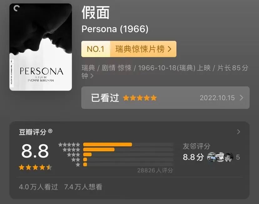 @余小岛:拍这片子的一个重要原因是因为伯格曼在担任皇家剧院院长时要说一些言不由衷的话,内心有太多怒火。也就说所谓的假面和真实的自我。
