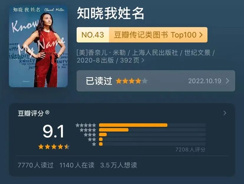 很痛苦很艰难的阅读体验,作者香奈儿·米勒(一个华裔女孩,中文名字是张小夏)讲述了自己遭遇性侵后方方面面的细节。