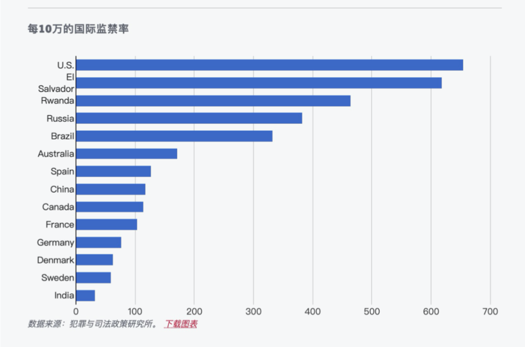 尽管近年来美国监禁激增趋势有所放缓,但美国监禁规模让司法最为严苛的国家也望尘莫及。美国每10万公民有707人被监禁,而中国每10万人有只有124至172人,伊朗每10万只有284人。比起西欧国家五至十倍之多,每100名美国成年人中有1名被监禁。可是我们也感到纳闷,也许我们看到犯罪第一个想到的就是,把囚犯扔进监狱,这样大家就可以安全了。但是美国这犯罪的人变少了,犯罪率降低了,经济更好了,关起来的人变多了,但是怎么感觉近年来依然“治安糟糕”?![]()