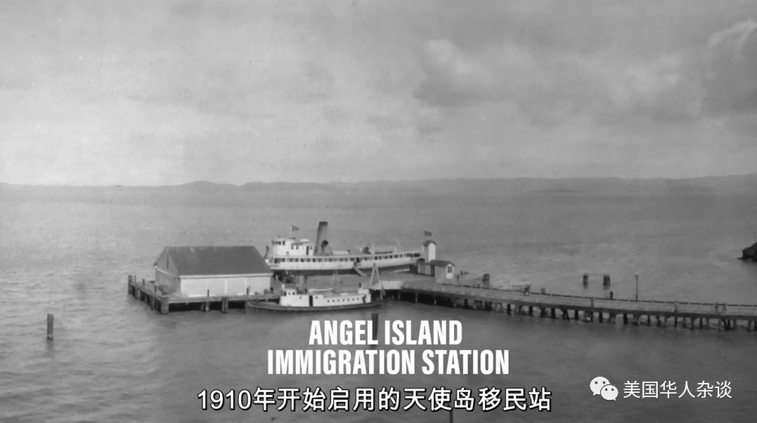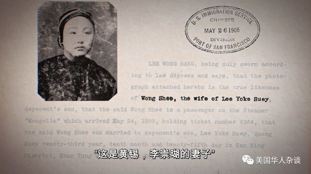 1910年开始启用的天使岛移民站,天使岛是来自亚洲各地移民的主要入境点。他们在码头接受入境检查。孩子们因为是美国公民就被放行了,而李崇瑚妻子的证件上却写着:这是黄锡,李崇瑚的妻子。![]()