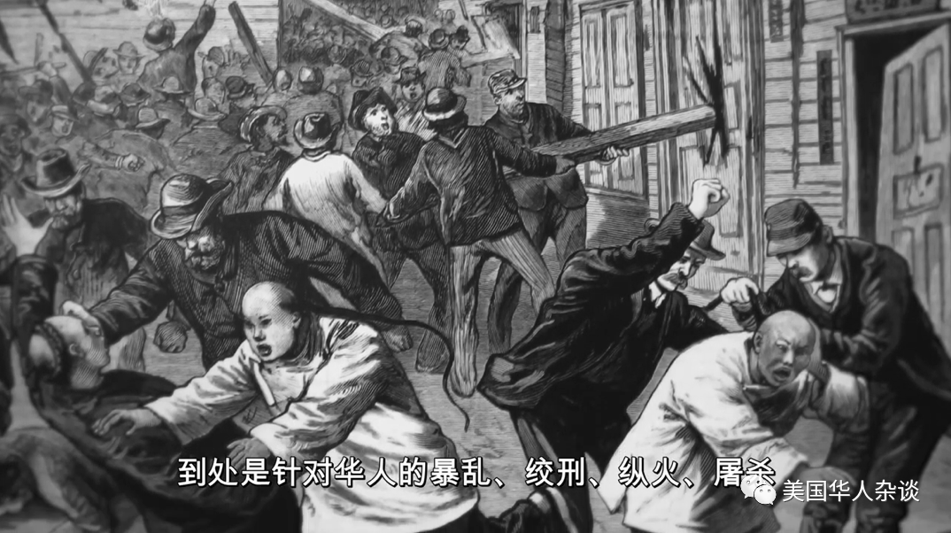 唐人街被看成藏污纳垢的场所,赌博、鸦片、嫖娼等恶行成为了华人的代名词。在那些日子里,在加州做华人是十分可怕的。在19世纪七十年代,开始大规模的排华运动。集会的口号是:华人必须滚出去。他们到唐人街殴打民众,破坏华人开的洗衣店,烧毁店铺。整个西部、西北部,直到内华达和南加州,到处都是针对华人的暴乱。绞刑、纵火、屠杀屡见不鲜。![]()