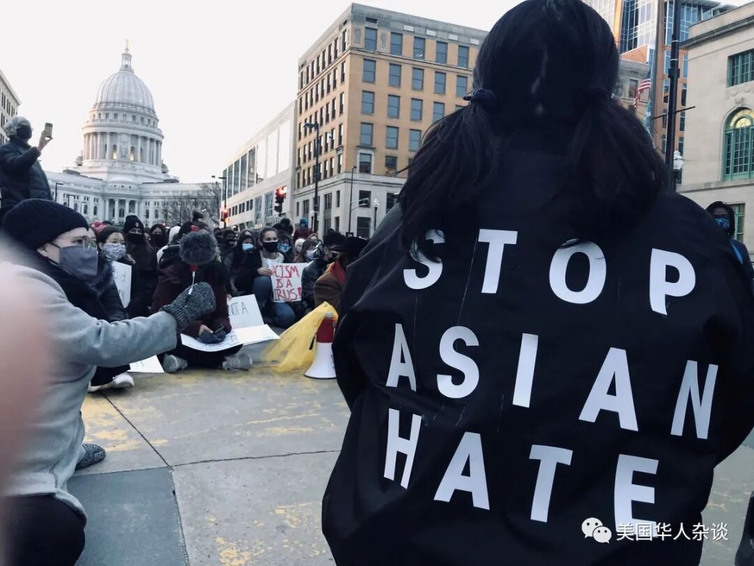 可能和许多人一样。在亚特兰大枪击案发生前,我曾天真的认为自己无论是否通过加入游行发声,这个世界都会朝着好的方向发展。然而,这件事过后,我再也不能坐视不理。巧合的是,趁我的愤怒还没有退去,3月18号的上午,我看到有人在微信上转载一张在麦迪逊支持亚裔游行的简单海报,于是我决定去现场看一看。三月中的威斯康星依然寒风凛冽,在18日(周四)下午的六点,天空已经开始变得阴沉,越来越多携带着标语的人开始在戴恩县政府大楼的门口聚集。很快,几百人的群体从广场延伸到了名为马丁路德金的街道上。人群中有一些骑着自行车来引路的人,也有很多人站在车旁等候接下来的指示。我从未在这个中西部的小城里见过这么多的亚裔面孔同时出现。更触动我的是,人群中有许多不是亚裔的脸庞,他们有的和自己的亚裔朋友站在一起,有的则是高举着支持亚裔的标语。人群的中央,在一群拿着醒目标语牌抗议者的一侧,有一位带领人站在那里,穿着一套黑色的运动服,及腰的紫色脏辫让他尤其醒目。他一手拿着巨大的扩音器,挎着小包,在和身边的同伴交谈着。他的搭档同样身穿黑色,在上衣的后背上贴着几个醒目的大字 “Stop Asian Hate (停止仇恨亚裔)”。 我在周围照了几张照片,默默的注视着那边站成一排举着标语的人,顺便开始和周围人打听活动的组织者。一位脖子上挂着相机的非裔小姐姐,告诉我她是ABC的记者,但是她也不是很确定这个活动到底是否由多人组织。人群开始移动的时候夜幕已经降临,但现场依然有几百人熙熙攘攘,几辆在前面开路的车打开了前灯,Basal开始带着支持者们向前移动。他迈开步子,举起扩音器对挥舞着标语牌的人群喊道 “难道这就是一个民主国家该有的样子么!?”。但是我实在过于好奇,在游行结束后上Instgram上一顿搜索。终于在发布海报的帖子下面,找到了那位留着令我印象深刻的紫色脏辫的游行带领人。与之前的碰壁不同,Basal十分友善的回复了我的消息,并答应与我聊一聊。Basal告诉我,他从小就在麦迪逊(Madison)长大。根据人口普查显示,这座城市里只有7%的非裔群体,而白人人口占到了78%。这种环境仿佛一种“圈子(bubble)”,将他困在了许多与自己在家听到的不同的说法中。在二年级的时候,学校老师上课讲了一个关于美洲原住民吃火鸡的情节,Basal 立即站出来反驳,认为这些并不是真正的历史,而是被 “洗白”的故事。上图是个种族在麦迪逊人口的占比,蓝色是白人,绿色是非裔,橙色为亚裔,图源:worldpopulationreview.com为此,八岁的他因此被拉去见了校长,而这也是做为乖孩子的他第一次被惩罚。从那之后,Basal意识到,说出真实的故事不一定会得到嘉奖,而如果想公布真相,那背后一定少不了人们为之奋斗。如今已经23岁的Basal,认为这件事在他心里埋下了一颗种子。在我的印象里,非裔仿佛生来就乐于发声,但我从未站在他们的立场想过,目睹的一桩桩让人愤慨的歧视事件让他们无法沉默。事实上,外界的影响一直在改变着Basal,作为非裔,他从很早开始就知道了许多因肤色被警察误杀或被法院不公平判决的事件。在看到一次次对非裔不公平的判决后,那时还在上初中的他在脸书(Facebook)上给当地数百人发出了邀请,希望他们一起参与学校的罢课活动。