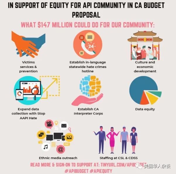 取得这项历史性成就的背后也少不了亚裔组织的努力。亚太裔立法小组,加州亚太裔事务委员会和我们非常熟悉的“停止仇恨亚裔”(Stop AAPI Hate) 都是这项预算案的推动力量。根据官方发布的声明,这次共联合了150多个亚太裔组织支持这项预算案。