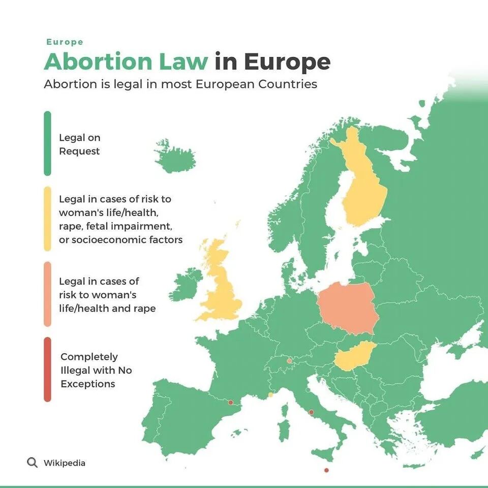 这种视美国为有宽松的堕胎法的立场得到了多布斯案中大多数右翼人士的支持。自判决以来,保守派机构和媒体人士坚持认为,欧洲领导人“因最高法院裁决而批评美国的法律(译者注:欧盟议会以324-155票谴责美国最高法院推翻罗伊案的裁决)...但欧洲大多数国家的堕胎法与密西西比州的法律相一致”,或“欧洲许多国家的堕胎法比美国更严格”,而有争议的堕胎法律“与欧洲许多堕胎法相比并不极端”。但事实上,这个说法是错误的。尽管许多欧洲国家有与密西西比州(15周妊娠期限制)类似的书面的妊娠期限制,一些国家还规定强制性的咨询和等待期,但在初始限制后生效的例外情况意味着,如果欧洲的女性愿意,她们仍然可以在妊娠期限制之后进行堕胎。这意味着,欧洲妊娠期限制与罗伊和凯西案框架之间的差异比表面上看要小。此外,在多布斯案之前,美国许多州为规避罗伊案制定反堕胎立法,使女性在妊娠期前三个月堕胎的官僚主义障碍远远大于欧洲大部分地区。第二个大问题是,美国许多州在罗伊案推翻后即将生效的的法律是完全禁止堕胎的,例外情况很少(例如考虑强奸或乱伦的例外情况),而且有更早的时间限制(例如手术限制在怀孕前六周的心跳法案),都比多布斯案的堕胎法律或相关的欧洲堕胎立法要严格得多。这种“罗伊案比大多数欧洲法律更加宽松”的误导性说法依赖于表面上的差异——如果我们只关注妊娠期限制,而忽略了欧洲堕胎法律中的许多例外情况以及欧洲的医疗健康状况。![]()