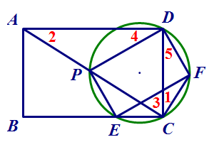简析:因∠PEF=∠PDF=∠DCE=90°,知D、F、C、E、P共圆,如下图,由∠1=∠2、∠4=∠5,易得ΔAPD∼ΔDCF,CF:AP=CD:AD,得CF=1.5。