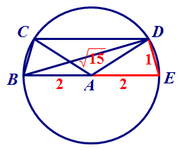 简析:因AB=AC=AD=2,知B、C、D在以A为圆2为半径的圆上,由AB∥CD得DE=BC=1,易求BD=√15。