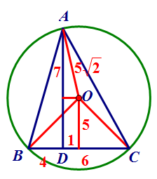 简析:作ΔABC的外接圆,如下图,易得AD=7+5=12。