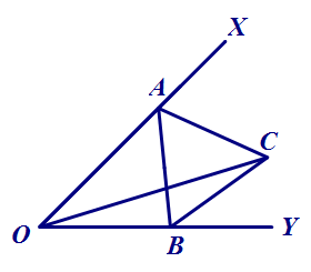 (2)如图,∠XOY = 45°,等边三角形ABC的两个顶点A、B分别在OX、OY上移动,AB = 4,那么OC的最大值为 .