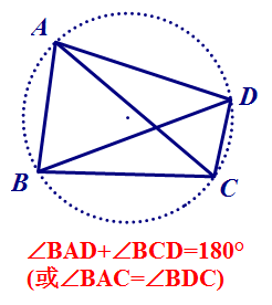 1.依据:对角互补的四边形四个顶点共圆(或一边所对两个角相等)。