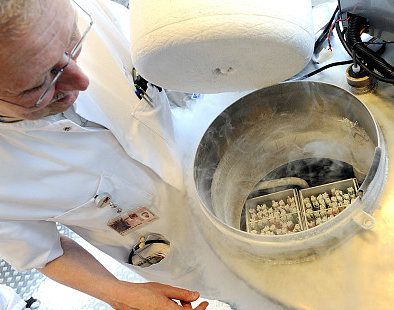 ↑荷兰阿姆斯特丹,技术人员打开装着女性冷冻卵子的容器。图据视觉中国