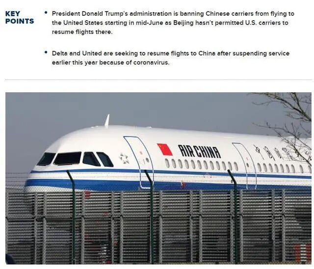 ● 特朗普此前宣布切断中国航班|图片来源:CNBC