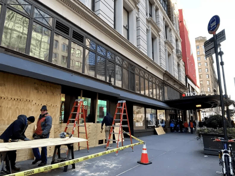 ● 纽约众多商家铺上木板预防暴动|图片来源:搜狐