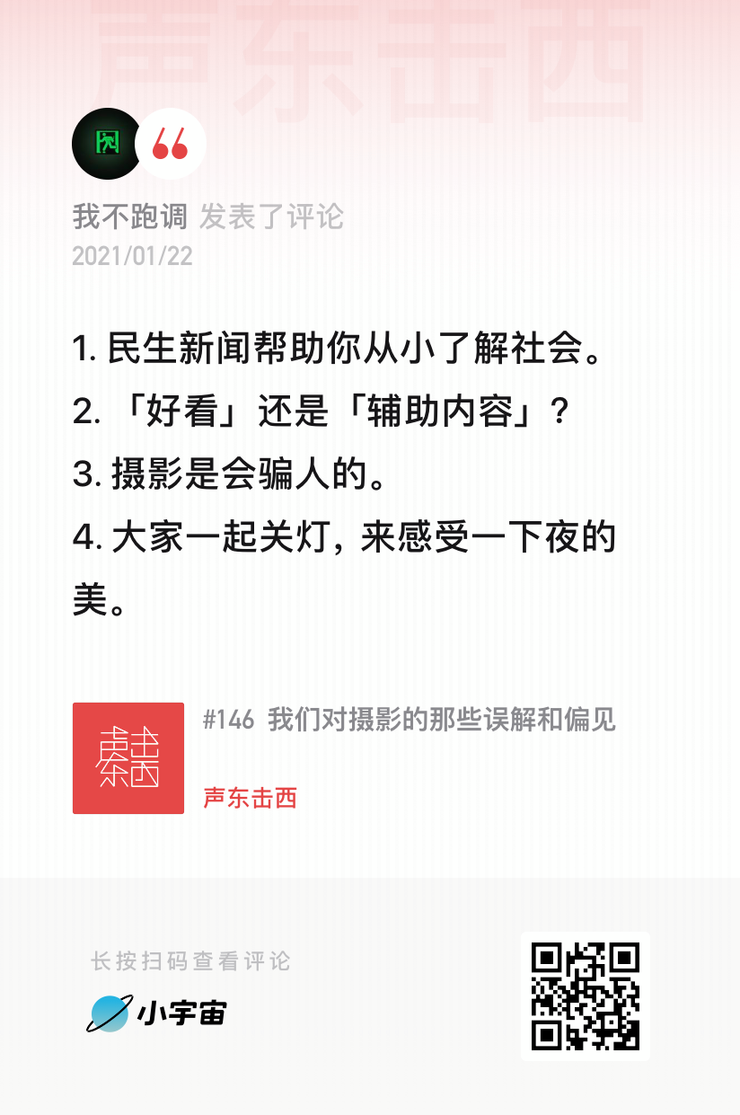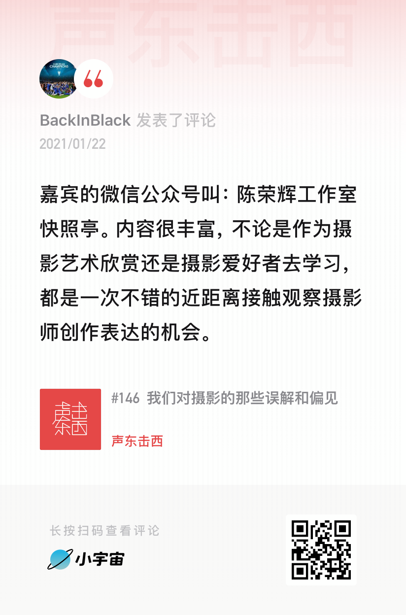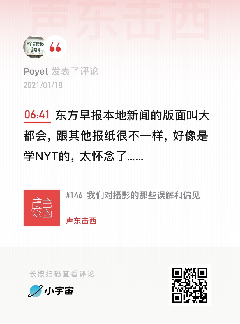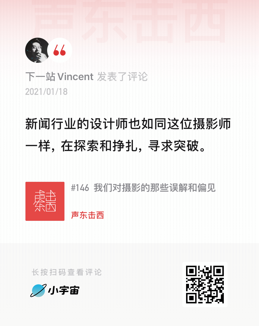 抵达真实的方式有很多种,艺术摄影亦是其中之一。互联网流媒体技术越发成熟,陈荣辉认为,线性的新闻拍摄可以交给短视频,就像摄相机出现之后,画肖像的工作不单由绘画来承担那样。实际上,有不少媒体人也参与了短视频创业,陈荣辉入职澎湃那年,他的引路人常河就离职加入了梨视频(现已离职)。