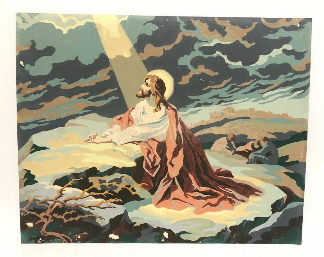 ● VTG 1956 Paint By Number PBN Jesus Christ in Gethsemane God Light Sky Clouds