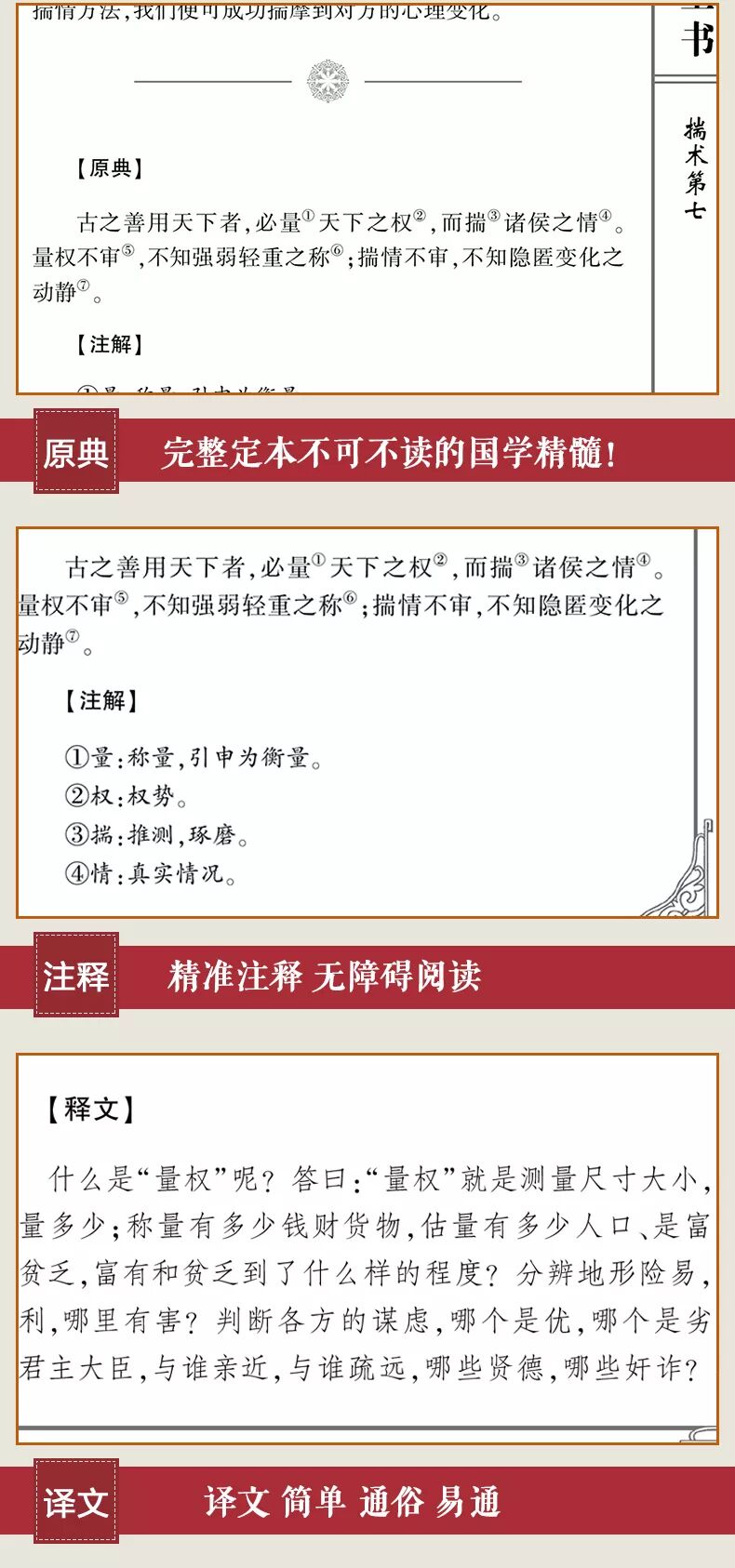 而此版本的《鬼谷子全书》就是取其精华整理出的全新版本。