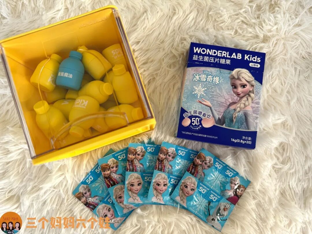 适合人群:1岁儿童以上可食用(1-3岁在家长监护下,冲水服用,3-15岁可打开即食)、孕妇(婴儿出生后更健康,过敏率降低)食用方法:1天1-2次,一次1-2颗,建议饭后半小时食用。这次给大家准备的冰雪奇缘款,是专门的礼盒装,里面有200亿益生菌粉和50亿益生菌咀嚼片两种。![]()