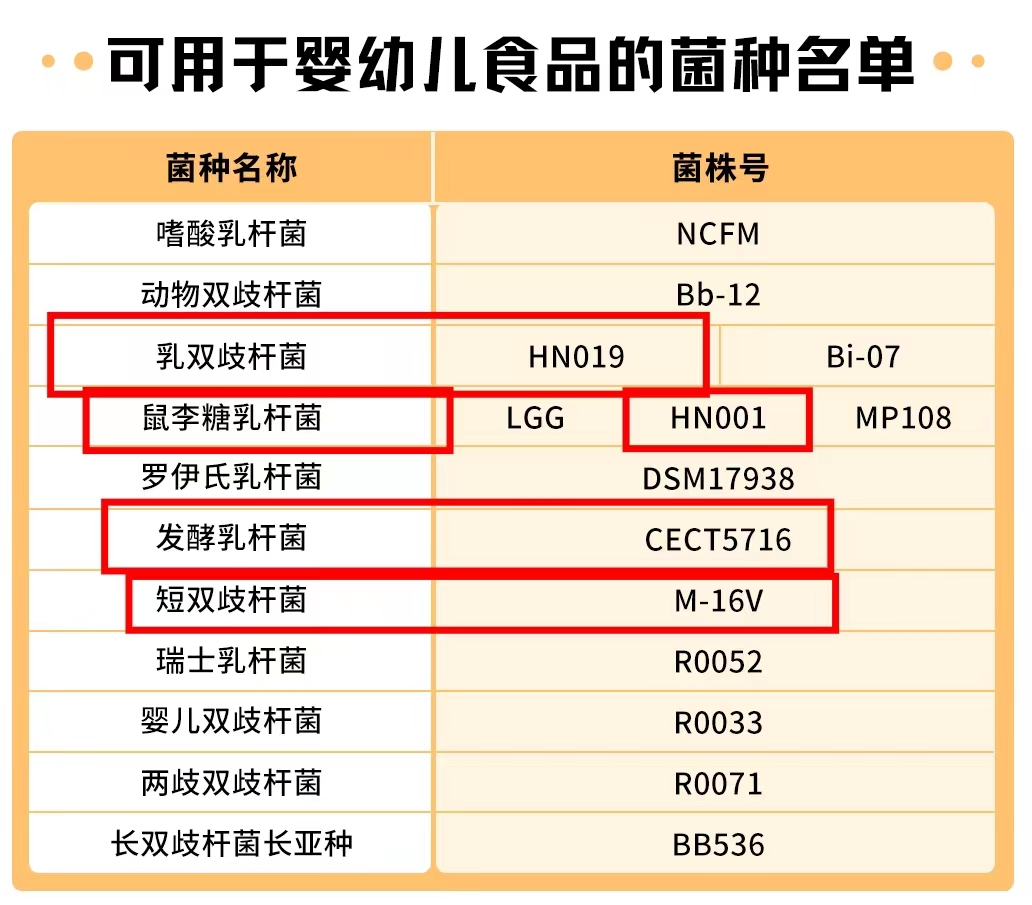 我们都知道,孩子的免疫力很容易受饮食和环境的影响,年后开学班级里人流更密集,这个时候不好好养肠胃,病毒也很容易入侵,补什么都很难吸收。所以孩子可以吃的益生菌要比大人的标准更高,尤其是在菌株上,千万不能乱选。我在卫健委的名单里查了查,这几十年只有14株菌株进入了婴幼儿可食用名单,WonderLab小黄瓶的4株菌都在这个名单里。小黄瓶里有4种菌株,里面最拔尖的就是发酵乳杆菌CECT5716,是已知的母乳中含量第二的益生菌菌种之一,属于名副其实的“母乳益生菌”。它更亲和孩子的肠道,也是孩子肠道有益菌群里的保护伞,喝奶粉或者混合喂养的孩子都可以吃。50亿的益生菌咀嚼片主要是帮孩子护牙,里面的乳双歧杆菌HN019是专业“爱牙菌”,可以调节孩子口腔里的菌群,改善口腔健康。![]()