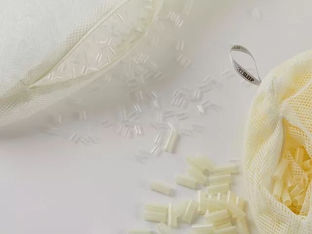 枕头里填充的是这种RICO中空管。看上去好像吸管,它是日本的一种新型材料,有着非常好的弹性、韧性和支撑力。