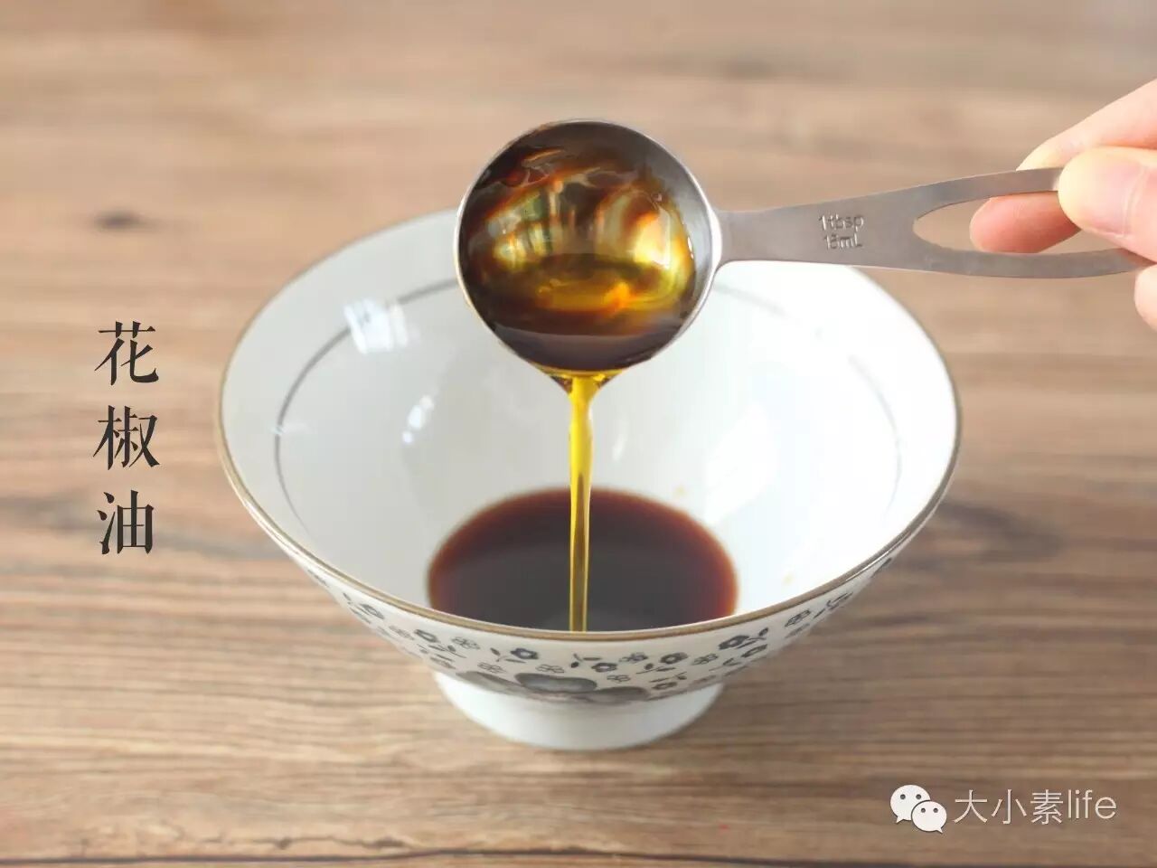 2、再将酱油、蚝油、糙米醋、花椒油、芝麻油倒进调料碗里搅拌均匀(可调制到个人喜爱的口感),备用;