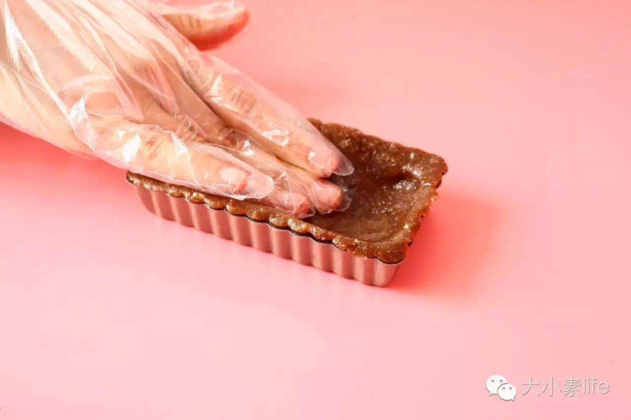 2、将破壁好的可可坚果食材放进模具里进行压成型,备用;