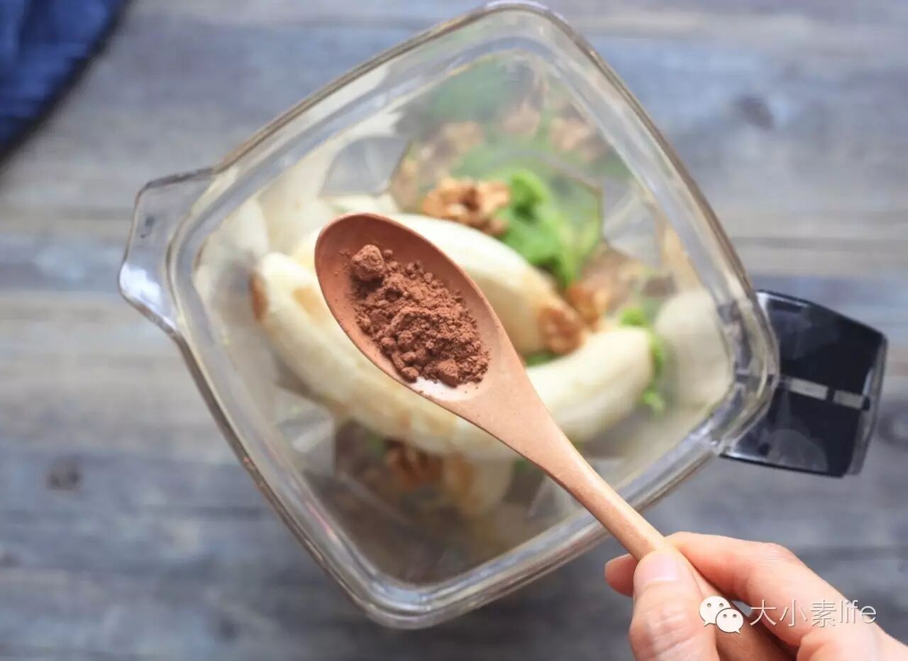 1、将牛油果果肉、香蕉果肉、核桃、可可粉、香草精倒进营养料理机进行破壁,打到口感细腻绵密后,倒进容器即可。