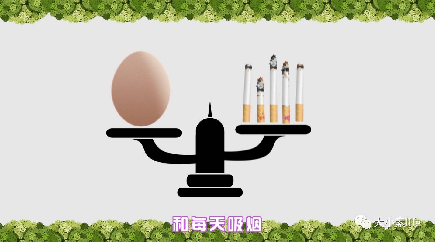 哈佛大学护士研究院对数万名女士的一项研究,每天摄入相当于一个鸡蛋的胆固醇,和十五年里面每天吸两支香烟对一个妇女的寿命有相同的影响,也就是说一个鸡蛋相当于两支香烟。