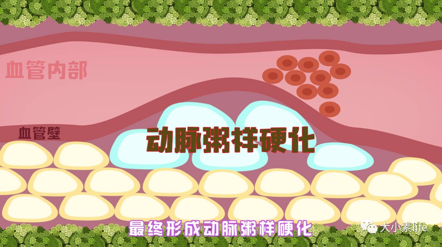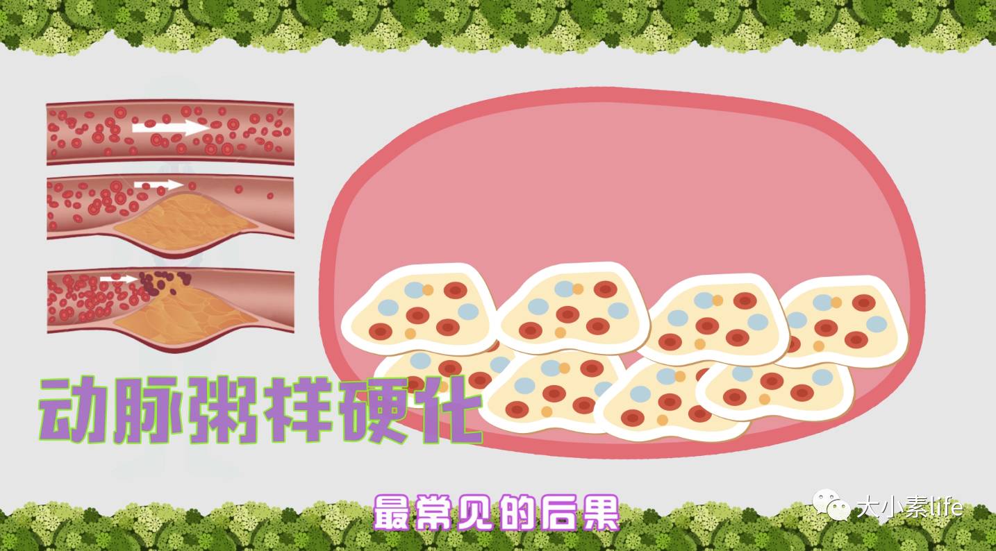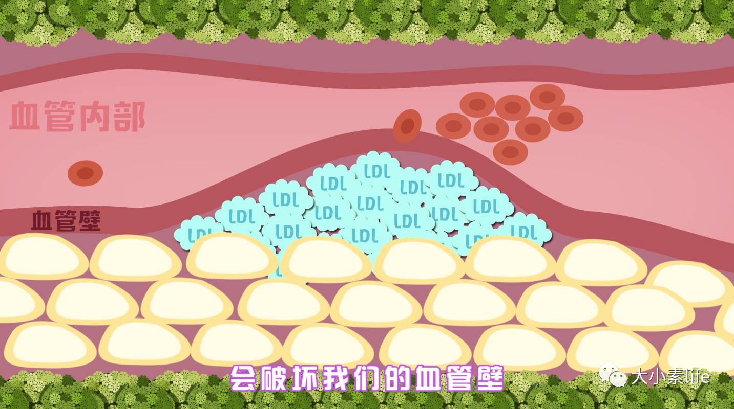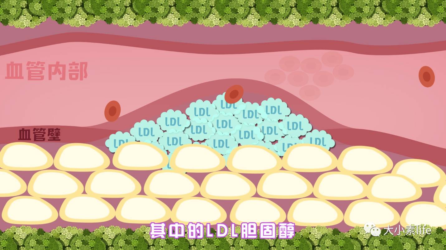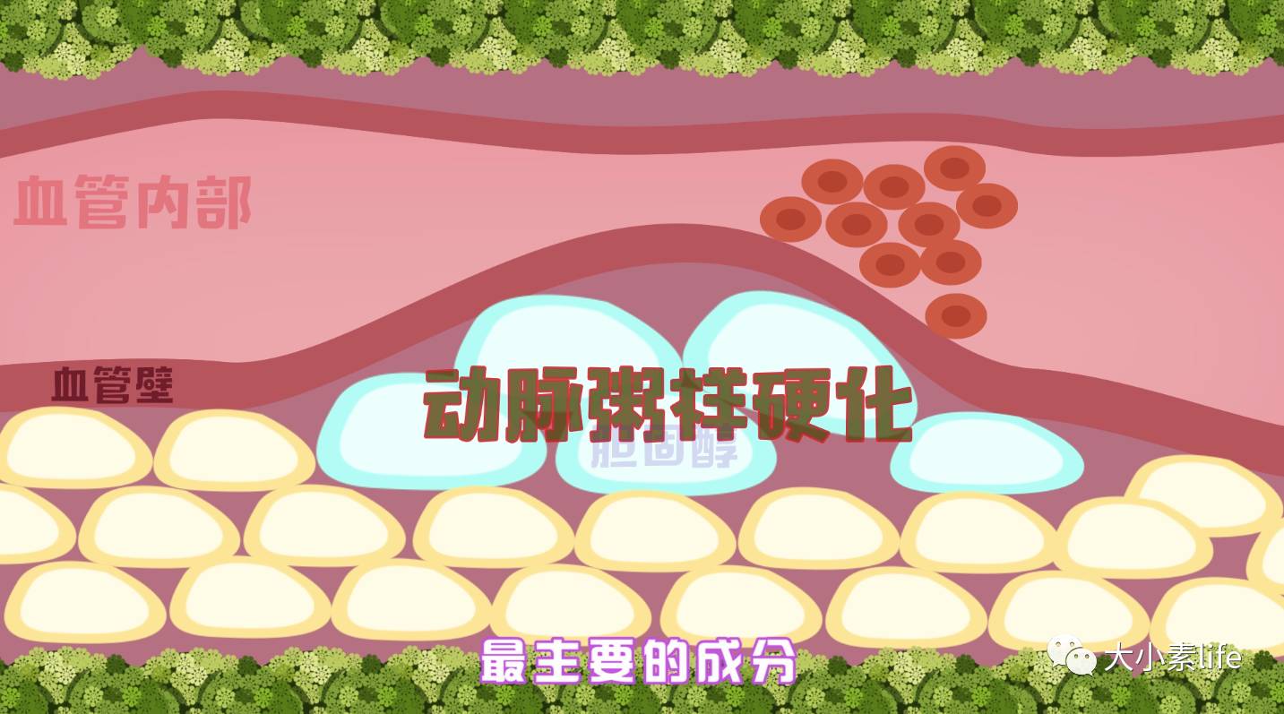 首先血液里面的胆固醇升高的时候,其中的LDL的胆固醇会破坏我们的血管壁,会发生一系列的变化,最终形成动脉粥样硬化。那么动脉粥样硬化最主要的成分,就是胆固醇。