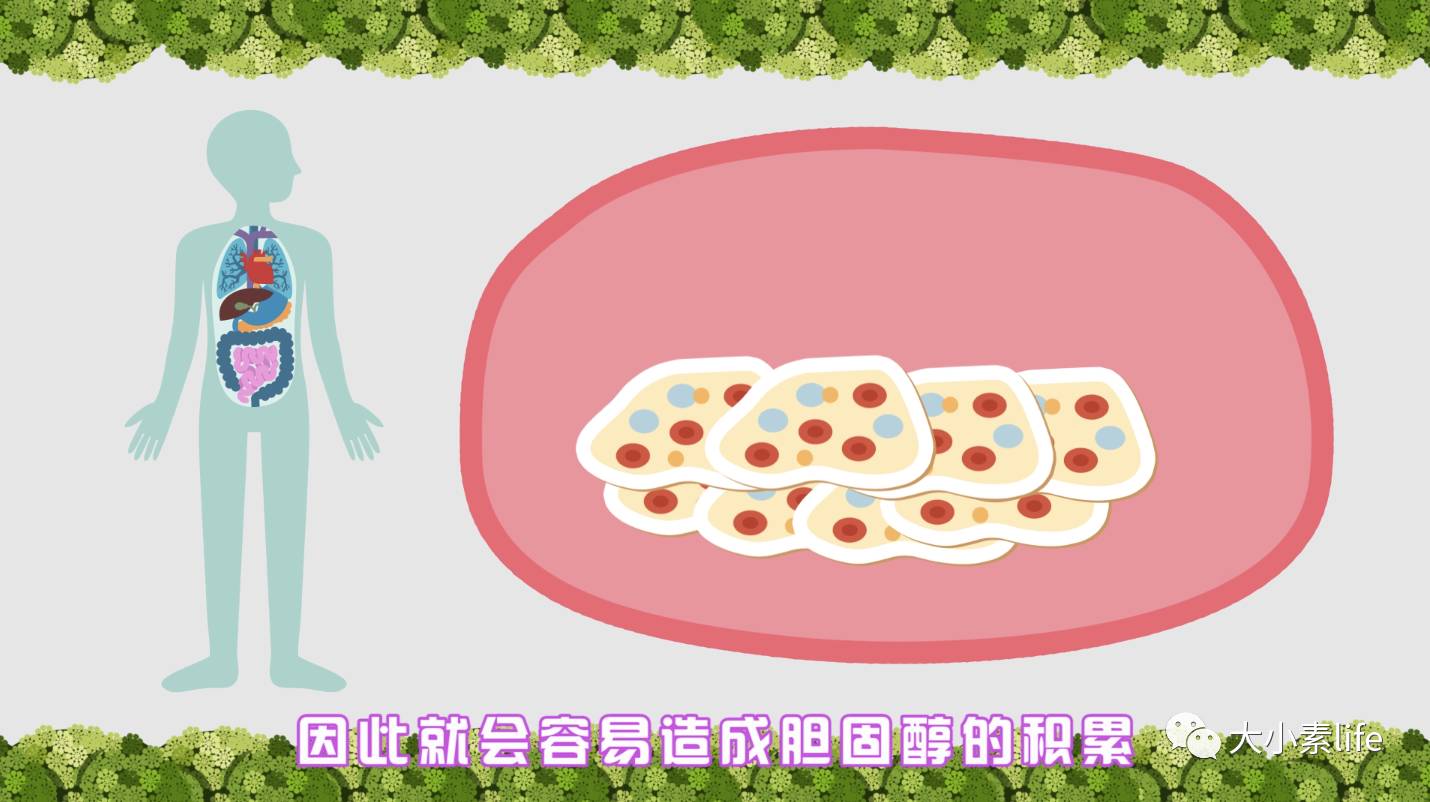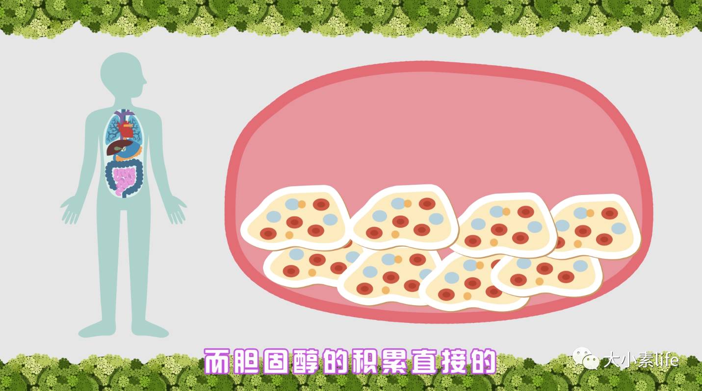 胆固醇是存在每个动物细胞里面,是每个动物细胞所必须的物质。我们身体可以合成可以摄入,但是不能分解,也不容易排出。因此容易造成胆固醇积累,胆固醇的积累最直接的最常见的后果就是动脉粥样硬化,导致心脑血管疾病。