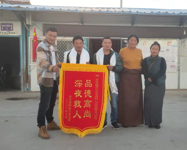 2021年10月,甘孜县3名群众带着锦旗、哈达和感谢信到甘孜县公交公司,诚挚感谢川VD10113出租车驾驶员洛绒克珠的救命之恩,感谢甘孜县公交公司培养出乐于助人、品德高尚的驾驶员。