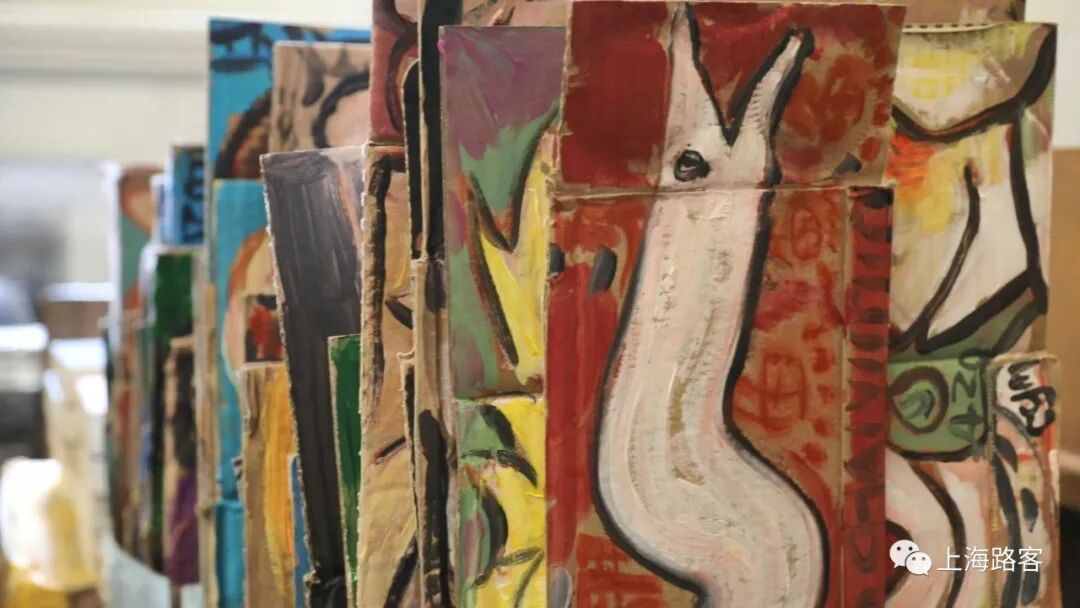近期他比较热衷于在快递的包装盒上画画,由于疫情期间网购数量大增,柴一茗不知不觉已经用快递盒画了七八百幅,他打算积累到一千幅左右就办个展览,不同的组合方式,变化无穷,会是一个很好玩的展览,很令人期待。