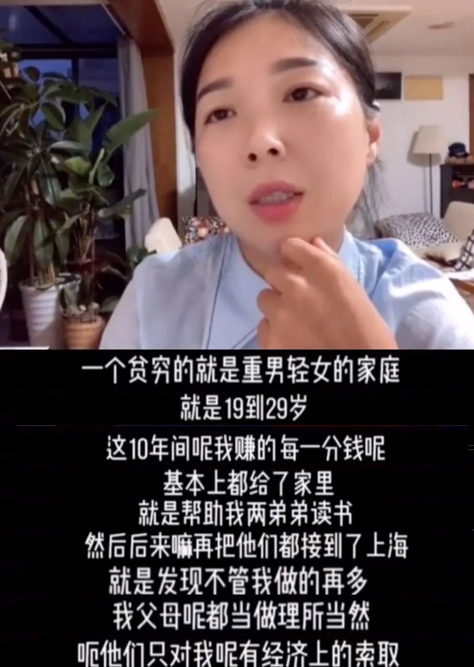 因为是家里的老大,下面还有两个弟弟,她早早就承担起了养家的责任。她没上过大学,甚至高中都没读过,职业中专毕业以后,就去了上海打工。19岁到29岁这十年里,王惠玲赚的每一分钱,都交给了父母,供弟弟上学。因为她是女孩,无论付出多少,在父母眼里都是理所当然。父母可以给儿子几十万去买房,但女儿创业时借给她2万块,很快就要回去了。对这个帮着养家10年的女儿,父母只有索取,并没有多少爱。甚至当她结婚后不想生孩子时,父母还会嫌她丢人,让自己在乡亲们面前抬不起头。面对这样重男轻女又自私的父母,王惠玲再也不想忍了。