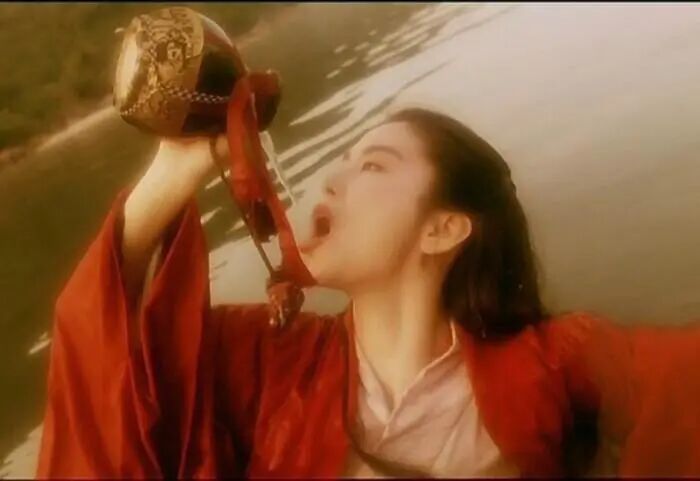 拍《笑傲江湖》长发被机器卷入,险些葬身水底,她忍着一肚子委屈,披头散发继续拍。