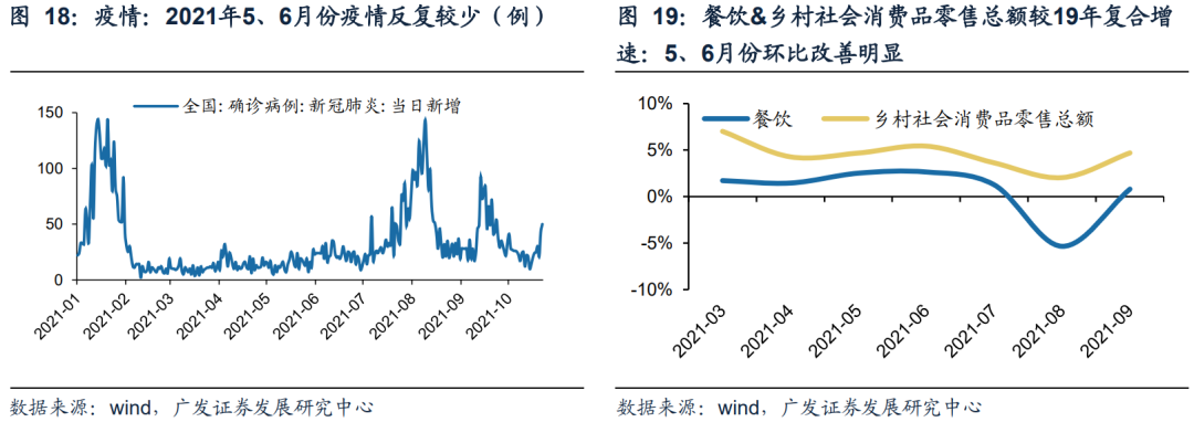 对标21年5、6月份,疫情常态化后预计2022年下半年餐饮、乡村社会消费品零售总额同比增速有望达10%/5%左右,推动食品行业需求复苏。餐饮景气度和底层消费力分别决定了食品行业餐饮和家庭端的需求;其中底层消费力与餐饮景气度密切相关,餐饮业中个体工商户和小微企业占比较高,餐饮等底层服务业景气度提升,将明显拉升底层消费力。我们预计22年5月份疫情能够得到有效的控制,对标疫情反复力度较小的21年5、6月份餐饮和底层消费力增长趋势,根据我们21.12.02发布的《食品饮料行业2022年投资策略》,则22年下半年餐饮收入较21年下半年有望同比增长9-10%,底层消费力较21年下半年有望同比增长4.73%,从而推动食品行业需求复苏,基本面迎来改善。