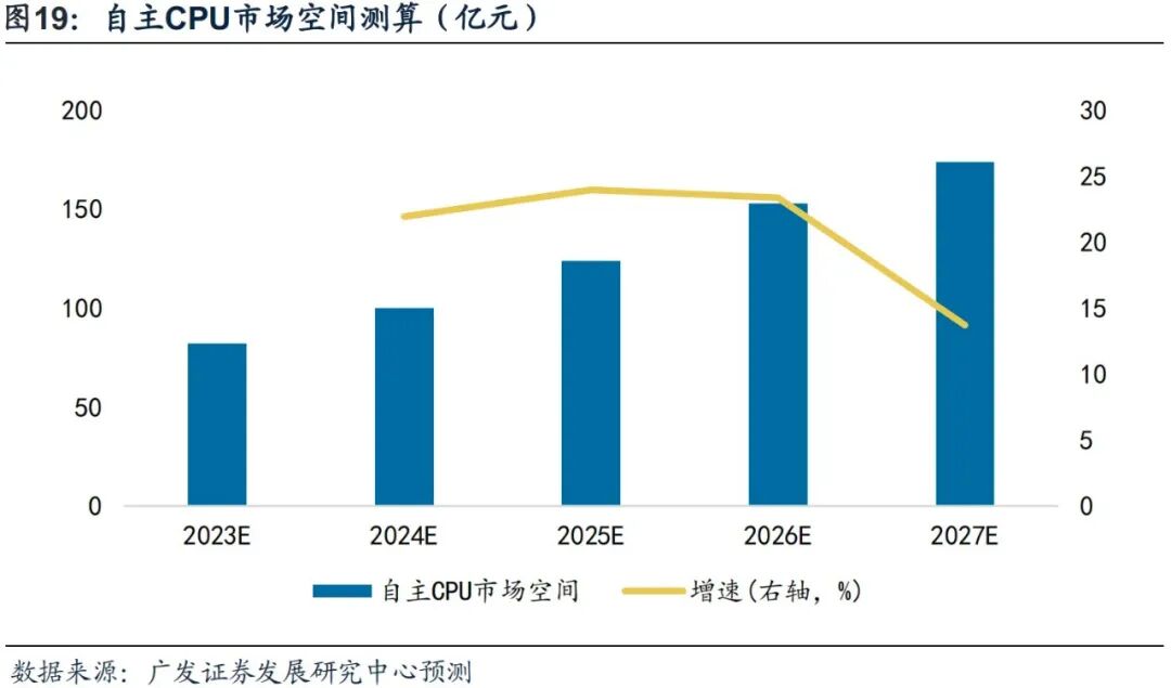自主CPU市场空间测算: