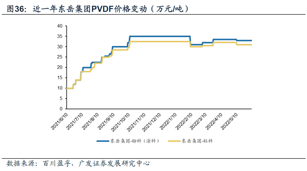 锂电用偏聚偏氟乙烯(PVDF)和六氟磷酸锂等锂盐市场规模快速增长,带动氟化工产业链发展。锂电池辅材中的正极粘结剂90%以上使用PVDF,锂电子巨头在全球范围内抢夺PVDF树脂,市场整体供不应求。