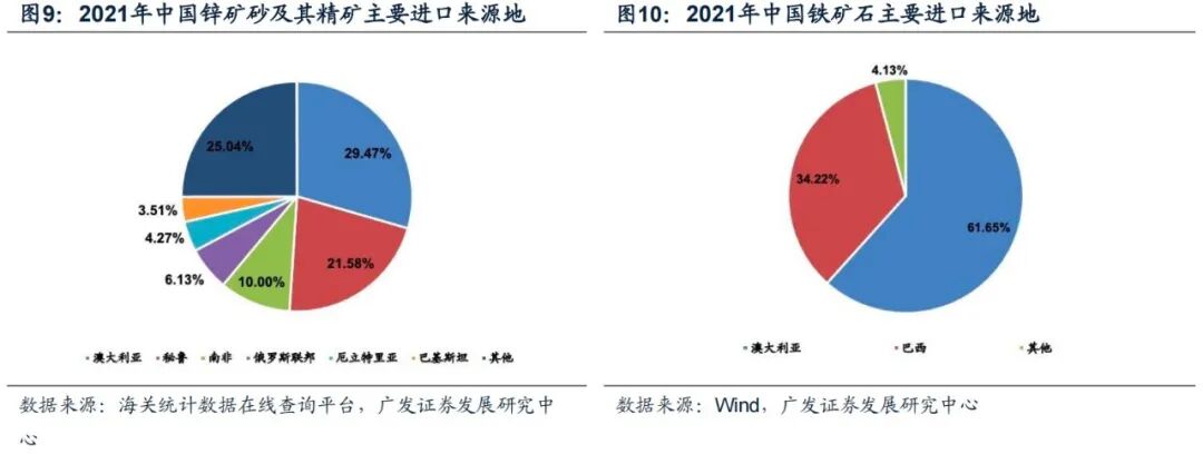 铁:依赖澳大利亚和巴西,对外依存度在80%以上